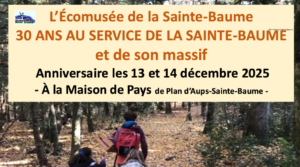 Les 13 et 14 décembre 2025, l’Ecomusée de la Sainte-Baume fête ses 30 ans d’activité. Pour l’occasion découvrez le programme de ce week-end événement. Samedi 13 décembre : 13…