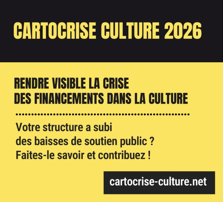 La Cartocrise concerne l’ensemble des catégories d’acteurs culturels, artistiques, socioculturels et patrimoniaux à l’échelle nationale. Lancée le 28 avril 2026, elle présente les données suivantes : domaine d’activité et localisation ; montant et provenance des baisses (subventions des collectivités territoriales et de l’État, fonds publics pour le fonctionnement des établissements et services publics culturels…) ; impacts sur la structure concernée.