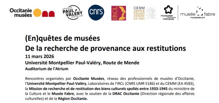 Lire la suiteOccitanie Musées, réseau des professionnels de musées d’Occitanie, organise le 11 mars des rencontres professionnelles autour du thème « (En)quêtes de musées De la recherche de provenance aux restitutions ». Ces rencontres…
