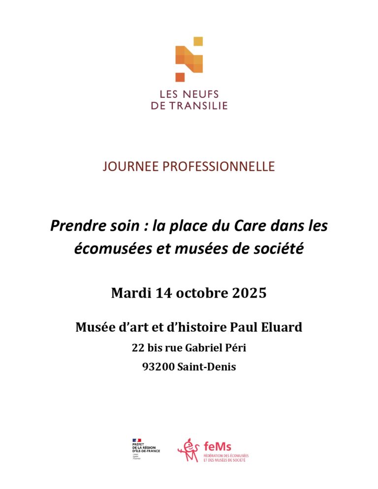 [Journée professionnelle / Prendre soin : la place du care dans les écomusées et musées de société] Journée organisée par LES NEUFS DE TRANSILIE en partenariat avec la DRAC Île-de-France…